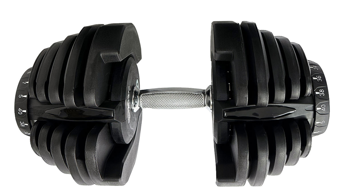 Explore the key features of our 40kg Adjustable Dumbbell (Pair) by clicking on the pulsing highlights.