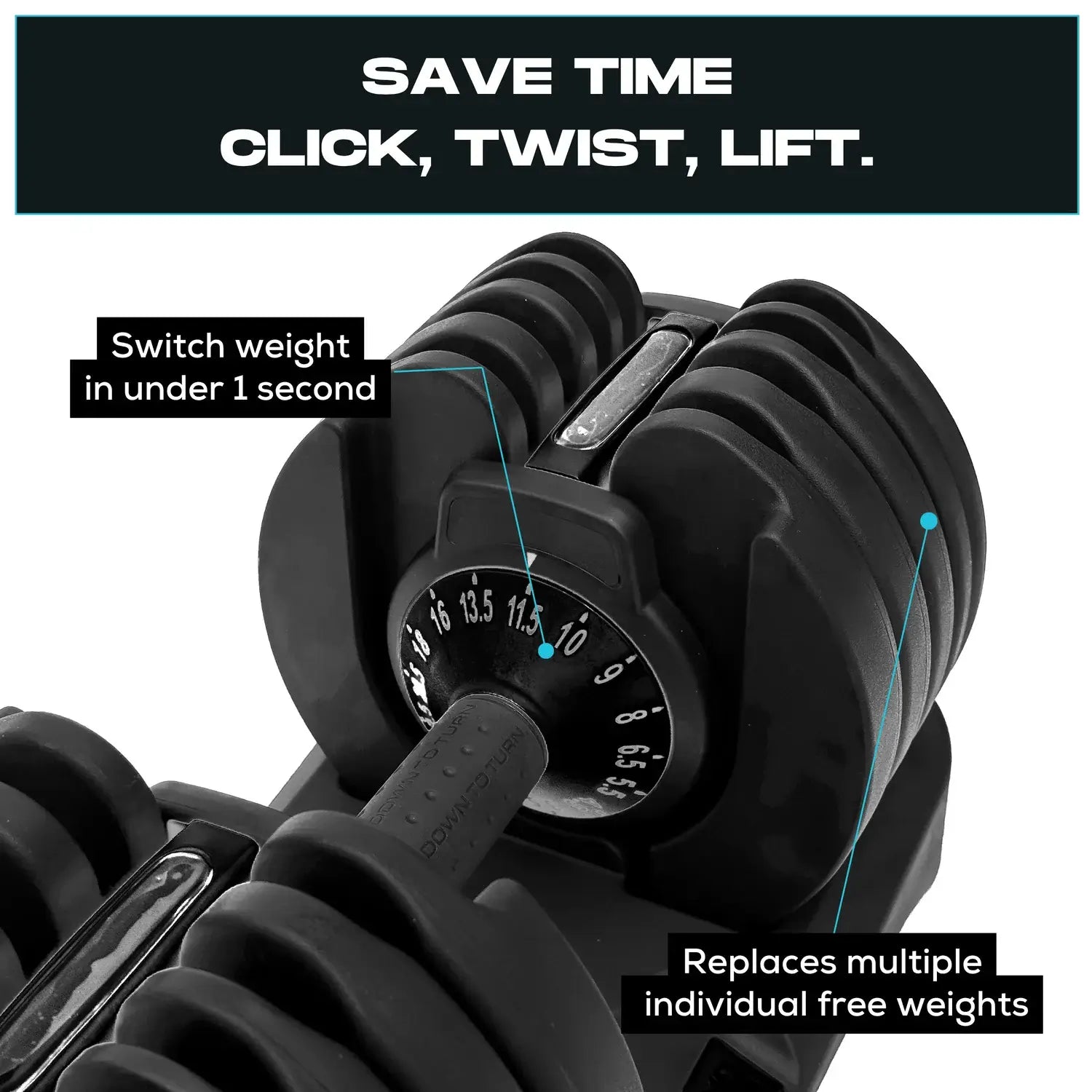 These adjustable dumbbells are a fantastic addition to my home gym. The Smart Click technology makes switching weights super easy, and the stand keeps everything neat and accessible. Highly recommend!