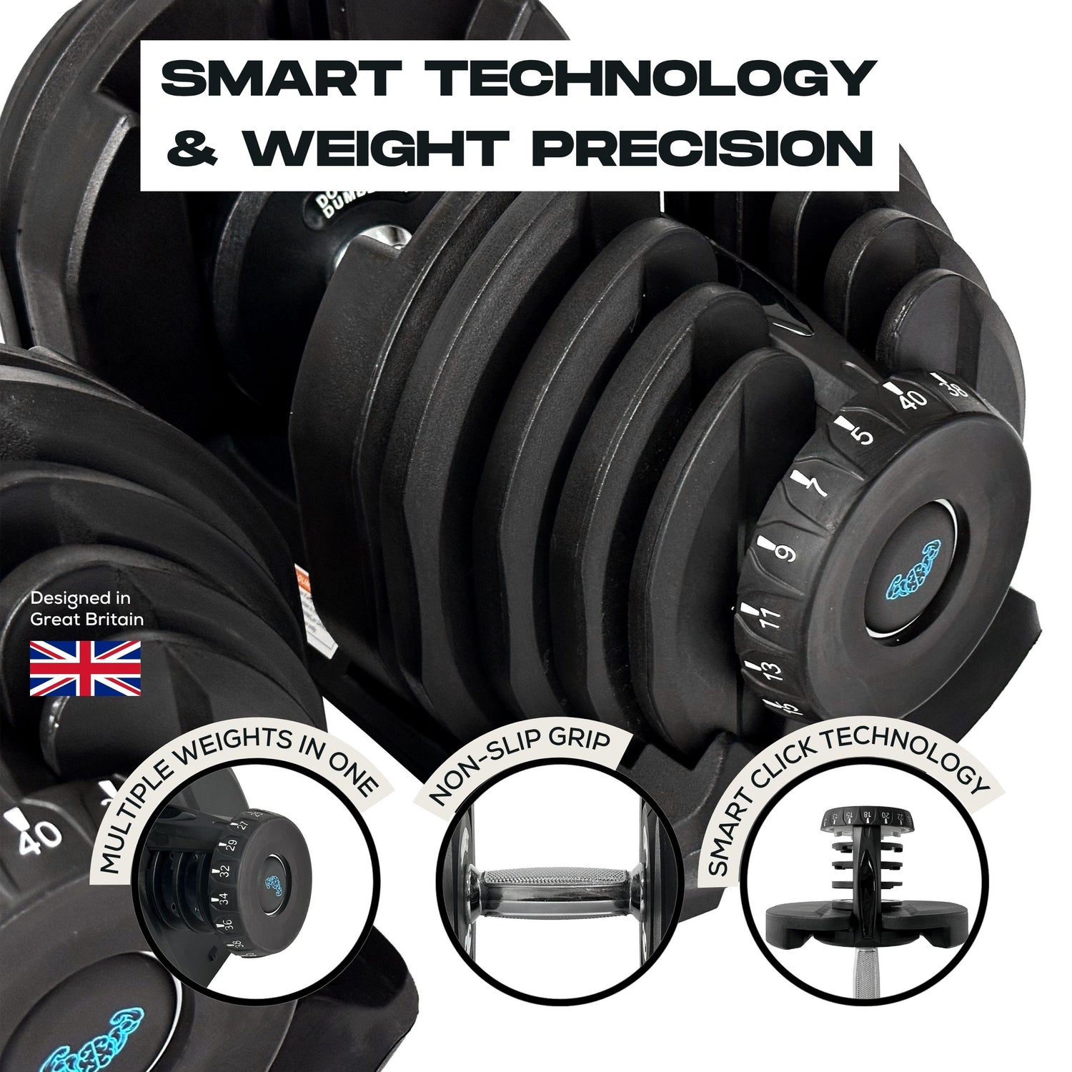 Easily shift from 5kg to 40kg with the innovative BRAINGAIN 40kg Adjustable Dumbbells which are perfect for home workouts whether you’re training in your garage, the back garden or your living room. One pair of these adjustable dumbbells replaces a complete set of 17 fixed dumbbells saving you space, cost and time!